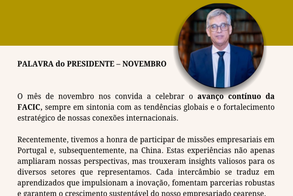 PALAVRA do PRESIDENTE – NOVEMBRO O mês de novembro nos convida a celebrar o avanço contínuo da FACIC, sempre em sintonia com as tendências globais e o fortalecimento estratégico de…