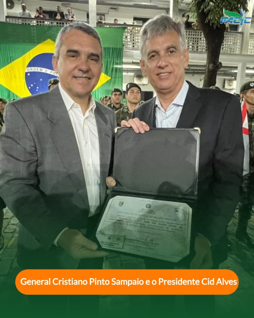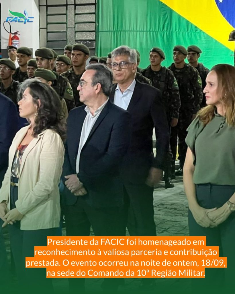 No último dia 18/09, a 10ª Região Militar teve a honra de homenagear o nosso estimado Cid Alves, presidente da FACIC, que recebeu o diploma de Amigo da 10ª Região Militar das mãos do General de Divisão Ivon Barreto Leão. Este reconhecimento é mais do que merecido, refletindo sua incansável dedicação à comunidade e às forças armadas! 🥇
